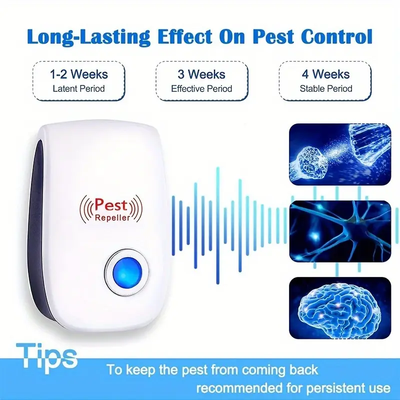 Nema potrebe za punjenjem, postavljanjem ili održavanjem – jednostavno ga priključite u utičnicu i neka radi umjesto vas! Za najbolje rezultate postavite ga niže za glodavce i više za leteće insekte.